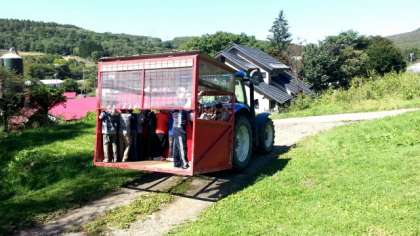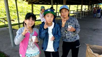 トラクターのかごに乗せてもらったあと美味しいアイスクリームをいただきました。
