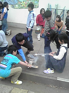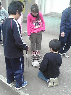 昔調べの学級や昔遊びの学習の様子です。
