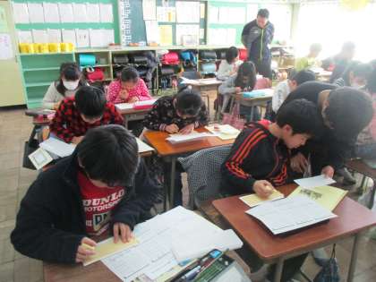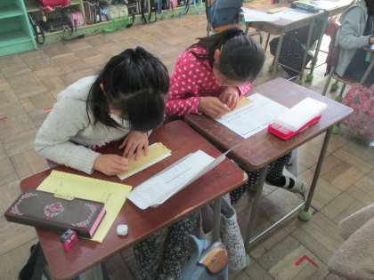 外部講師の先生に、点字のルールを聞いて名前を書いてみました。