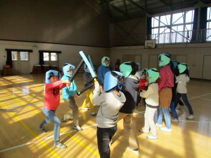 今年度最後のサタデースクールでは、スポーツチャンバラをしました。