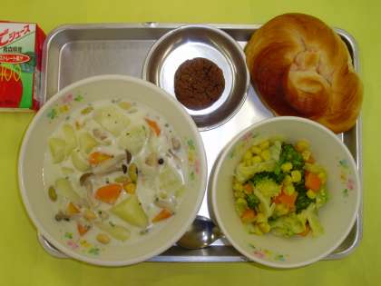 リザーブパン 豆のきのこのシチュー コーンサラダ ココアクッキー