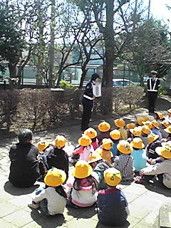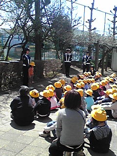 一年生に警察の方が交通事故にあわないように交通ルールのお話をしてくれました。