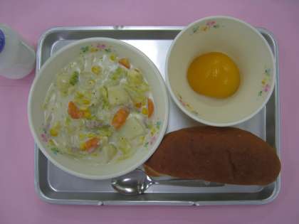 ☆ セサミパン 春野菜のクリームシチュー くだもの 牛乳 ☆