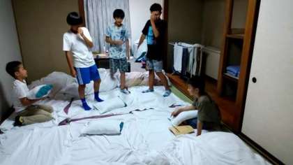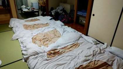 寝る準備ができました。どの部屋も綺麗に布団が敷けています。もうすぐ消灯です。