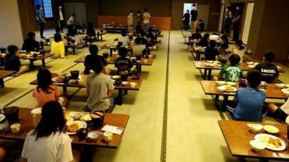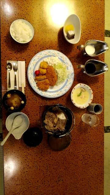 宿での最後の夕食です。味わって食べます。