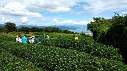 日本平でお茶摘みの体験をしました。