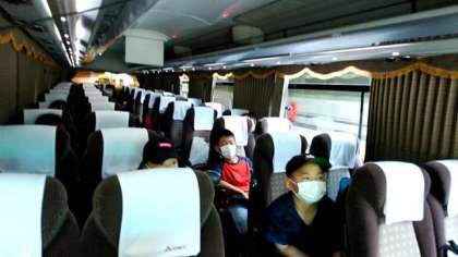 足柄サービスエリアでの休憩のあと、学校に向かっています。ほぼ予定通りの時間に学校に着きそうです。