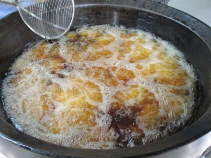 写真は「豆腐のまさご揚げ」を作っているところです。