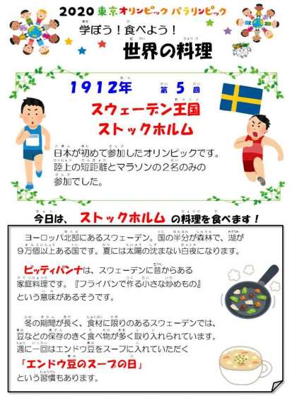 今日は【学ぼう!食べよう!世界の料理 〜スウェーデン〜 】の日です。