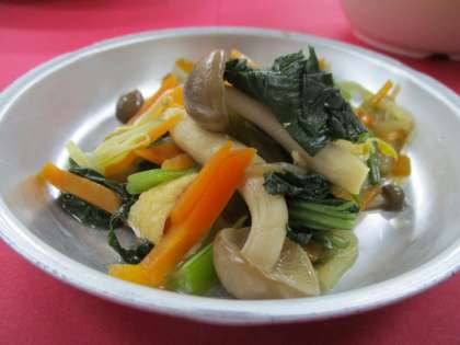 今日の献立は、二色丼、野菜の色どり和え、ジャガイモの味噌汁、牛乳でした。