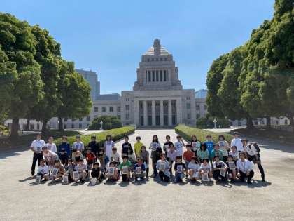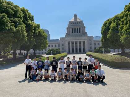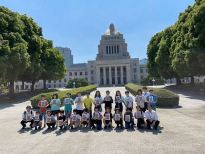 見学を終えて、クラスごと、学年全体で集合写真を撮りました。