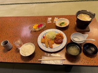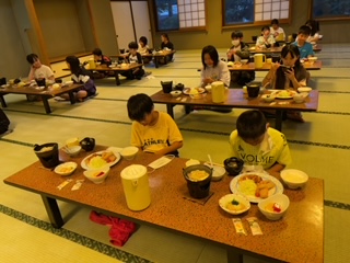 移動教室で最後の夕食です。