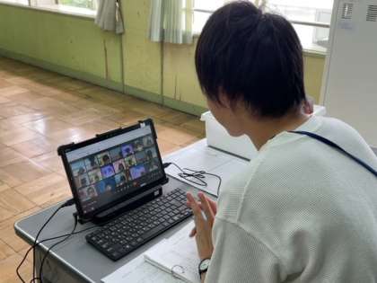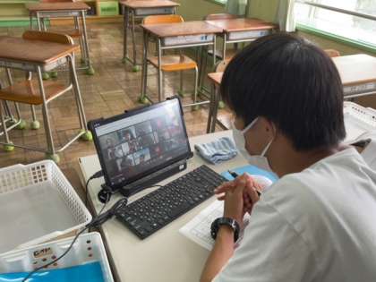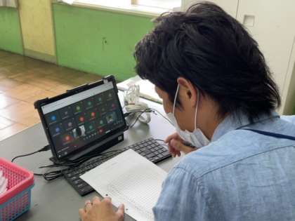 今日、7月27日(水)は、夏休み中なので各クラスがオンラインで学級活動をしました。画面越しに子どもたちと先生が顔を見ながら近況報告や夏休みの過ごし方などを話し合っていました。