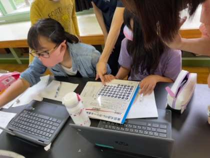 学習するものは、ドリルや読書感想文、自由研究をする子もいます。中には、今、開催されている東京オリンピックのピクトグラムを調べている子もいました。ピクトグラムを見ながら何を表しているのか予想してから、調べていました。当たった時は、とても嬉しそうでした。