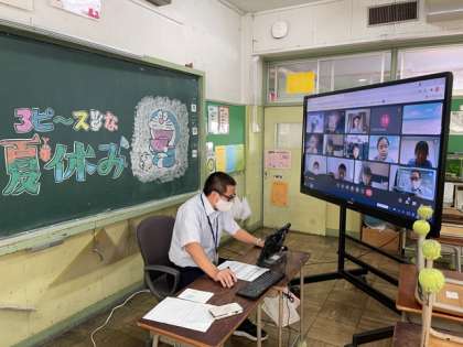 夏休みも、もうすぐ終わりになります。昨日8月26日は、夏休み中の子どもたちと端末を使ったオンライン学活を全学級で行いました。