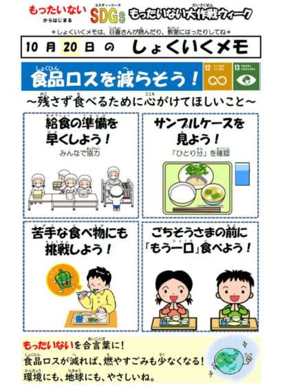 もったいない大作戦ウィーク3日目を迎え、給食をきれいに完食する学級が増えました。