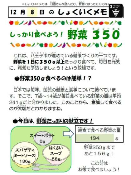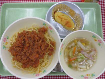今日は、八王子産のさつまいもを使って「スイートポテト」を作りました。皮をむいてマッシュしたさつまいもに、バター、牛乳、生クリーム、さとうを加えて混ぜ合わせ、形をととのえてオーブンで焼きました。しっとりとした食感と優しい甘さ。子どもたちに人気で、残菜はほとんどありませんでした。