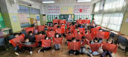 先日の社会科見学の「東京染ものがたり博物館」で子どもたちが作った染め物が学校に届きました。自分たちで染めた布が鮮やかな赤色に染まっているのを見て、子どもたちはとても嬉しそうでした。一人一人違う仕上がりや生地の肌触りを比べながら楽しみました。貴重な経験をすることができました。