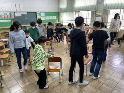 「たてわり班遊び」をしました。たてわり班とは、1〜6年生の異学年がグループを作って違う学年とも交流する班です。