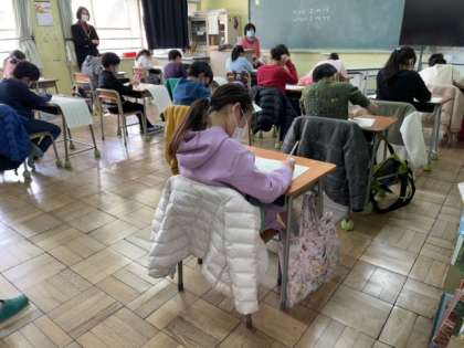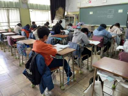 子どもたちは、ピーンと張りつめた静かな教室で、検定問題に集中して取り組んでいます。鉛筆で字を書く音だけが聞こえてきます。とても清々しいです。