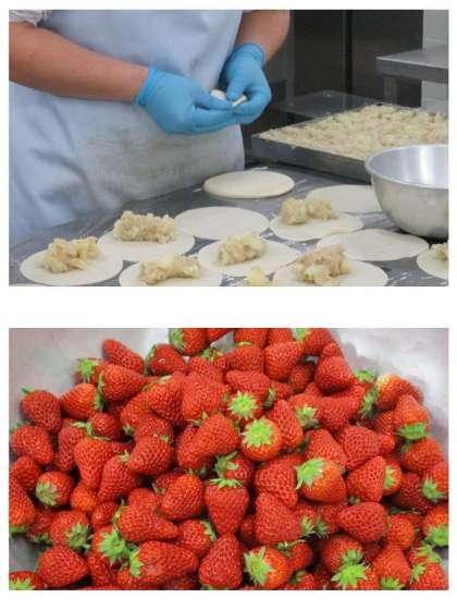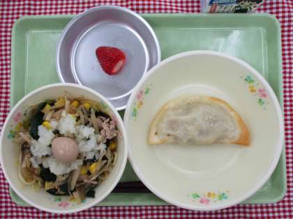 また、八王子ラーメンと一緒にいただいたのは、鶏肉・じゃがいも・玉ねぎを塩とブラックペッパーで味付けした具を皮で包んだ「ポテトぎょうざ」と「紅ほっぺ」という品種のいちごです。