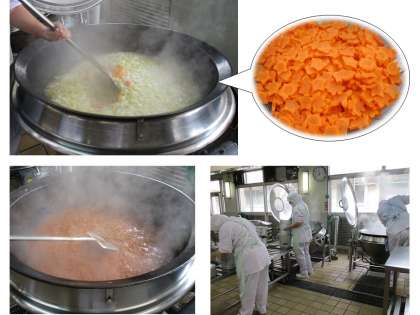 また、野菜スープでは、ひと・さかな・りす・ハート・くま・星・うさぎ・ハリネズミ・花の形をしたにんじんを使い、少しでも給食を楽しめるように工夫しました。