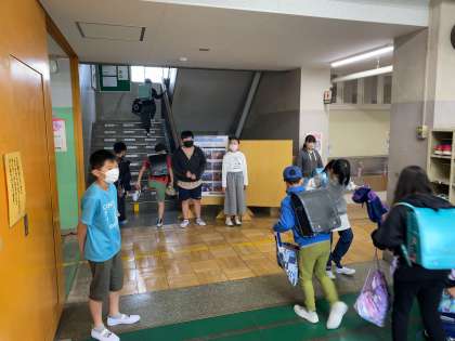 今週月曜日から、代表委員会があいさつ運動を行っています。「元気に、はっきりと、相手の目を見て」の3つのことに気を付けて、登校してくる子どもたちに向けて朝のあいさつをしています。6年生が1年生に向けて「今日から給食が始まるよ。」と話しかけるなど、素敵な場面も見られました。