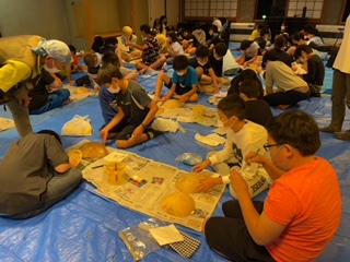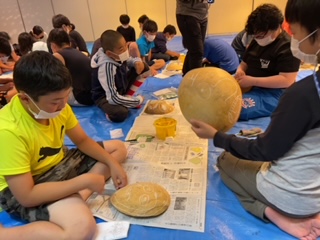 夕食後、ふくべ細工体験です。