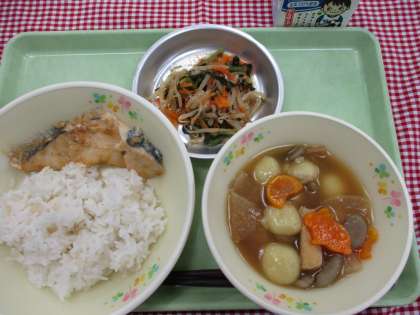 今日は、さつまいもを団子に練りこみ、うさぎと月のかたちに型抜きしたにんじんを使って「お月見だんご汁」をいただきました。
