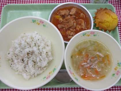 今日は、そのかぼちゃにちなんで、かぼちゃケーキをいただきました。