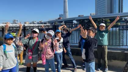 4年生が社会科見学で東京巡りに行ってきました。染物体験をしたり、フェリーに乗船して土地利用の仕方を確かめたり、浅草寺周辺を散策したりして、社会科で学習したことを実際の体験として学んできました。