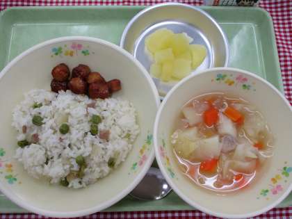 ドイツでよく食べられているのは、ライ麦を使ったライ麦パンですが、お米を使った料理もあります。そのひとつが、グリンピースを使ったごはん「リジビジ」です。