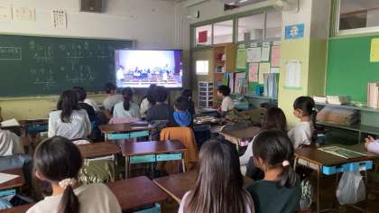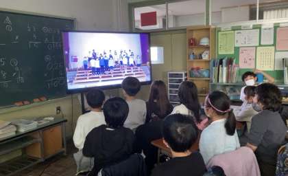 11月25日(金)、26日(土)は学習発表会です。4年生は本日、4時間目に体育館で通し練習をしました。本番が迫っているということもあり、どの子も程よい緊張感の中、とても集中して発表の練習ができました。練習の様子をクロームブックで撮影したため、教室に戻ってから、自分たちの発表の様子を鑑賞しました。子どもたち自身も今日の練習には手ごたえを感じていたようで、自分たちの発表を楽し気に鑑賞していました。