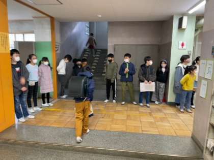 1月24日(火)から、たてわり班あいさつ運動が始まりました。たてわり班が交代で昇降口に立って、登校してきた子どもたちに元気よくあいさつをします。