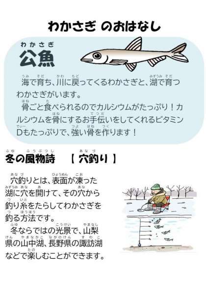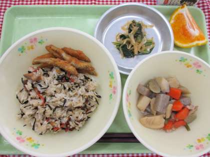 今日は、旬のわかさぎを香り揚げにしていただきました。食欲をそそる香り。いただきますをする前から聞こえてくる「おいしいそう」という声。さくっとした食感に、にっこり顔の子どもたち。残さずしっかり食べてくれると嬉しいです。