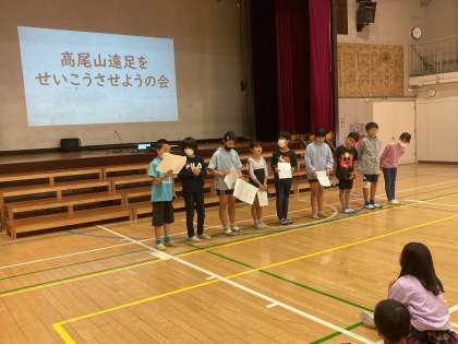 5/23(火)の高尾山遠足に向けて、3・4年生合同での「高尾山遠足をせいこうさせようの会」を行いました。3年生にとっては初めて、4年生にとっては2回目の遠足での登山です。会の始めに高尾山に登ったことがある子を聞くと、3年生でも半分以上の子が高尾山に登ったことがあると答えていました。さすが年間の登山者数が世界一位の高尾山。その数は年間300万人を超えるそうです。