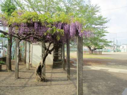 藤棚 公開日 2023/06/06 更新日 2023/06/06 今日のできごと 4月18日(火)正門から少し校庭に入ったところに藤棚があります。少し前までは、まだ白かった(左の写真)のですが、紫色に色づいてきました。独特の香りも、ほんのり漂ってくるようになりました。藤の花の穂は下からほぐれていくことは、八小に来て初めて気づきました。 いいね(0)