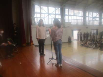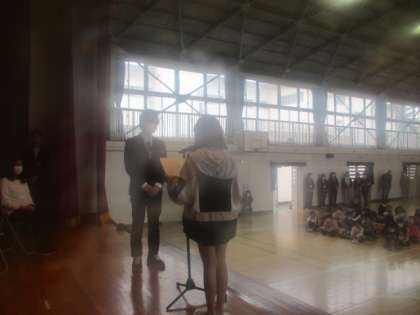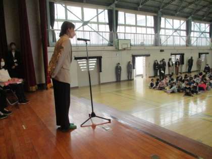 4月24日(月)この日に離任式がありました。離任式というのは、この3月で八小を離れた職員とのお別れの会です。ご都合で来られない先生もいましたが、子ども達は、代表の子が手紙や花束を渡すなどして、別れを惜しみました。八小をこれまで支えてくださった職員の皆様、本当にありがとうございました。