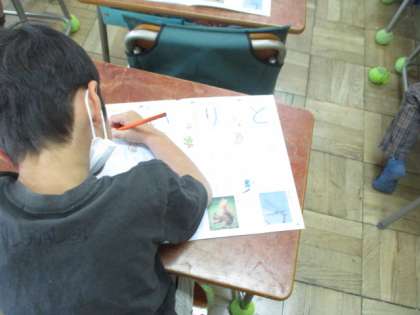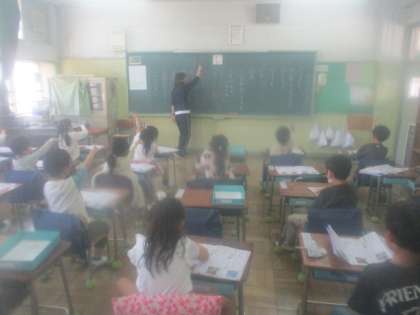 4月27日(木)1年生の教室では、ひらがなの練習をしていました。教室をのぞいたときには、「し」という字を練習していました。「し」の付く言葉集めや空書きで練習した後、練習ノートに字を書いていきます。一つ一つ、丁寧に書いていました。子ども達は、毎日いろいろなことを吸収していきます。
