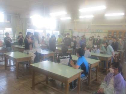 5月2日(火)「みんなで生きる子(共生)」は、八小の教育目標の一つです。たてわり班活動は、異学年の子ども達のふれあいをする大切な時間がありました。たてわり班をまとめるのは、6年生です。この日は、たてわり班を進めるためのオリエンテーションの時間でした。6年生一人一人が決意の言葉を述べたり、グループ名を決めたり、進め方の確認をしたりしました。6年生の意識も高まり、本番を迎えます。