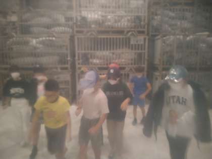 6月8日(木)バスは、清水港に到着しました。大きな倉庫の中を案内していただき、実際にマイナス50度の倉庫の中に入れてもらいました。初めは、「平気」と言っていた子ども達も、実際に入るととてもたえられず扉が開くとみんな逃げるように出ていました。その後で、冷凍マグロに触らせてもらいました。なかなかできない経験に子ども達も大興奮でした。
