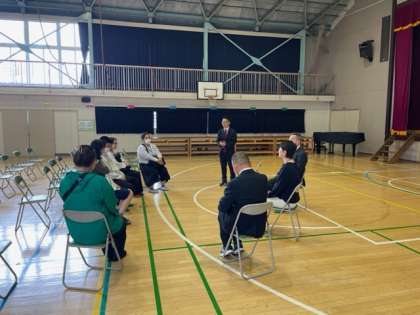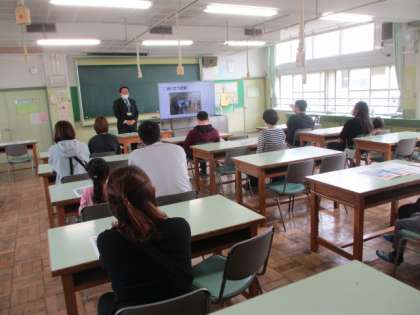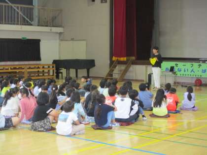 5月20日(土)前日に引き続き、学校公開、新1年生対象の学校説明会、セーフティ教室(1・2・3年生)を行いました。セーフティ教室は、読売防犯教室の方を講師としてお招きして、お話していただきました。腹話術の人形を用意したり、映像を用いたり、子ども達の興味を引くような工夫をしながら、不審者から身を守る方法についてお話していただきました。意見交換会は、人数は少なかったものの、講師の方も参加してくださり、様々な事例について情報交換をすることができました。