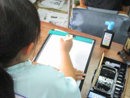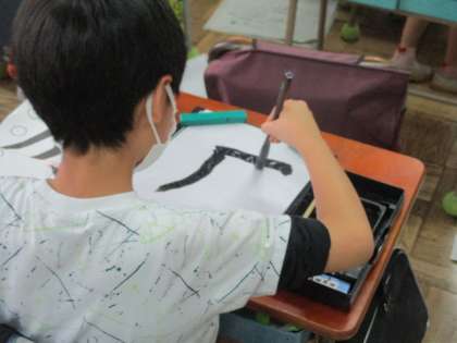 書写(4年生) 公開日 2023/06/12 更新日 2023/06/12 今日のできごと 6月2日(金)4年生の教室では、書写(習字)の学習をしていました。書写は年間にバランスよく配置して行うことになっています。授業参観や保護者会等で学校にお越しになった際にご覧ください。 中心の位置を意識しながら書く、子ども達は、この日のめあてを意識しながら書いていました。 いいね(0)