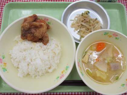 今日の主菜は、チキン南蛮です。醤油・砂糖・酢・レモン果汁で作ったタレがしみ込んだチキン南蛮は、子どもたちに好評でした。