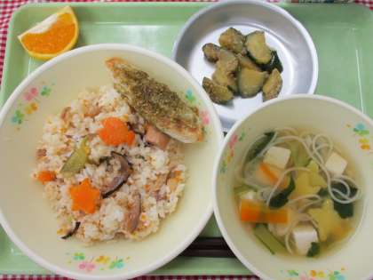 今日は、7月7日七夕の日にちなんだ給食をいただきました。ちらしずしには、星型に抜いたにんじんを使い、七夕汁では星型のかまぼこを使って、七夕の星空をイメージしました。また、七夕汁には、天の川をイメージしたそうめんと、短冊にみたてたにんじんとだいこんが入っています。