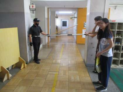 7月11日(火)避難訓練がありました。7月の避難訓練は、不審者への対応を学ぶ訓練でした。不審者役は、地域の方にお願いしました。最後にはさす股を使い、確保されるところまでを想定しての訓練でした。実際には起きないことを願いつつ、いざというときのために備えます。