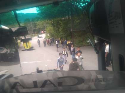 7月13日(木)赤沼の駐車場からバスに乗り込み、竜頭の滝の上で降りました。竜頭の滝を横に見ながら、流れに沿って歩いていきました。班ごとに写真を撮り、再びバスに乗り込んで昼食場所に向かいます。