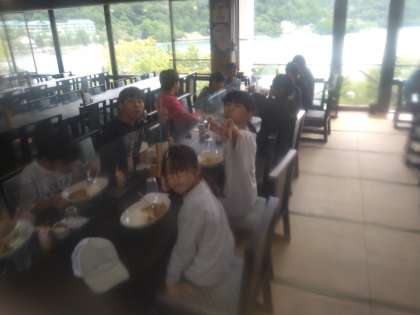 7月13日(木)昼食場所である「中禅寺観光センター」に着きました。この日のメニューは、みんな大好きなカレーです。ハイキングでたくさん歩いたので、お腹はぺこぺこ。ほとんどの子が、完食でした。