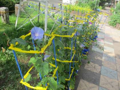 7月19日(水)毎日暑い日が続いています。鉢植えに植えてある1年生のアサガオや2年生のミニトマトが、それぞれ花を咲かせたり、実をつけたりいていますが、この暑さで、しんどそうです。子どもたちの登下校も心配です。水筒を持たせていただくなどの対応をお願いいたします。