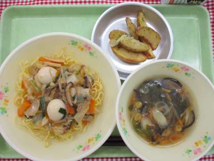 「木耳」と書いて「きくらげ」と読みます。生のきくらげはプリプリ、乾燥のきくらげはコリコリとした食感が楽しめます。給食では、乾燥したきくらげを使って、中華スープを作りました。